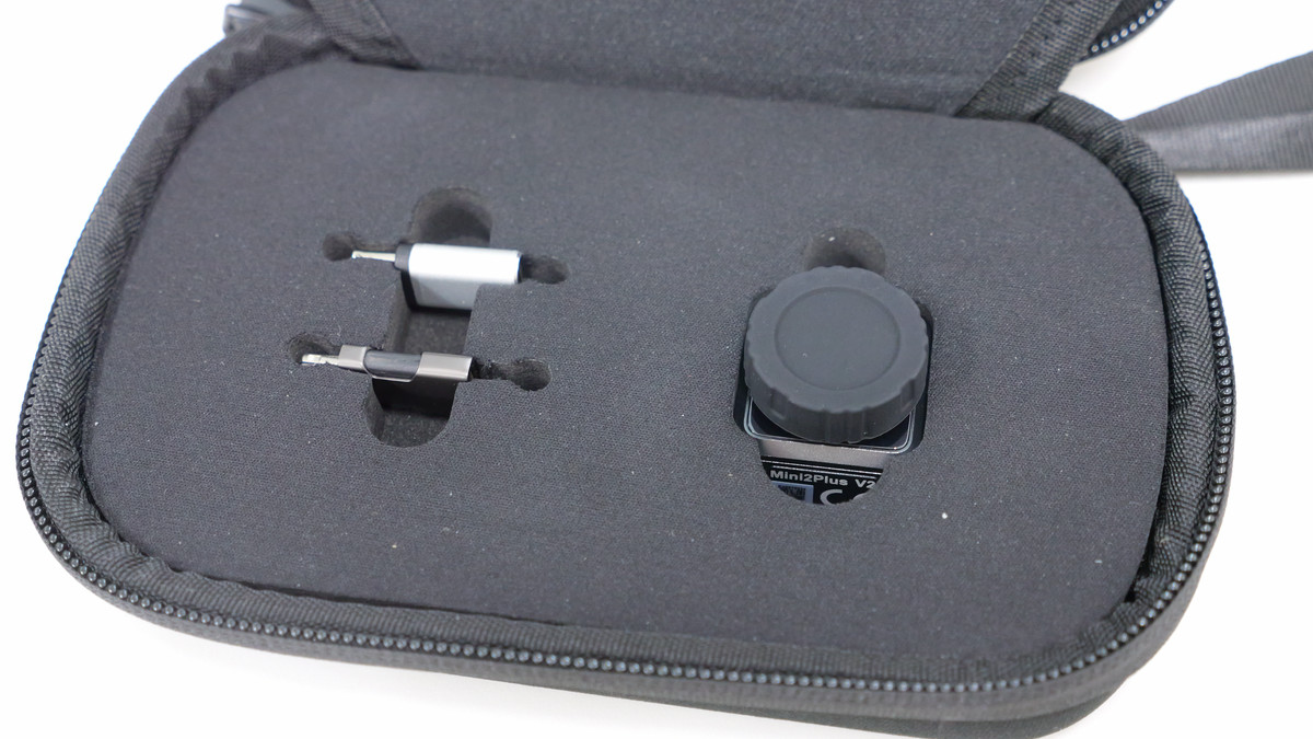 When you remove the rubber cover that covered the lens part, it looks like this. The Mini2Plus V2 is characterized by the ability to manually control the focus, and the area around the lens is dial-shaped.