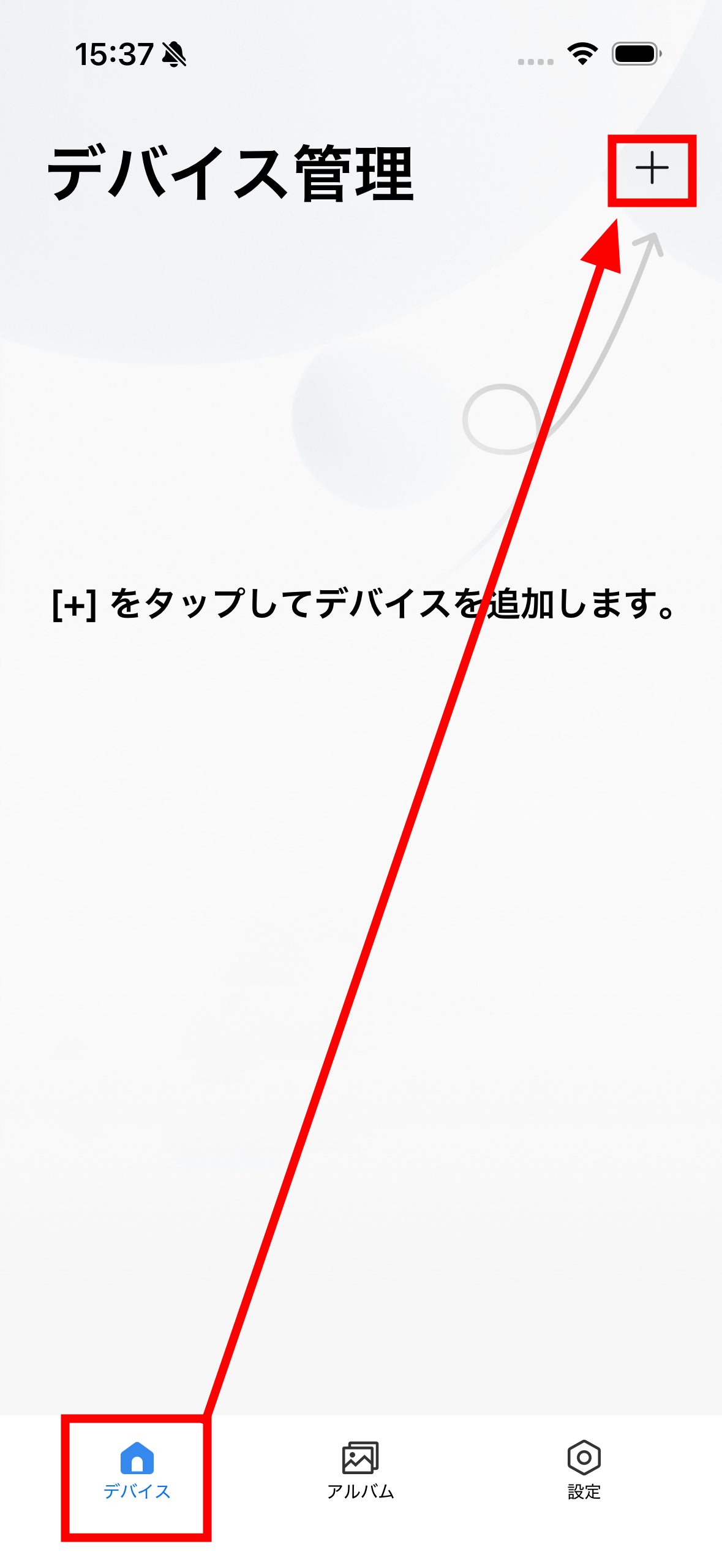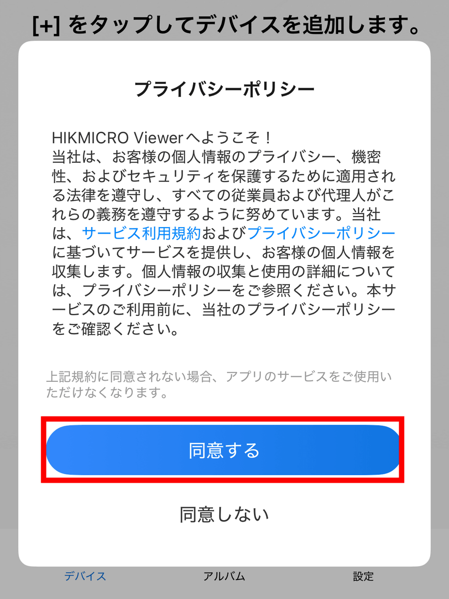 User registration is not required to use HIKMICRO Viewer. The app has a simple UI, with only three items at the bottom: “Device,” “Album,” and “Settings.” Under “Devices” tap “+” in the top right corner.