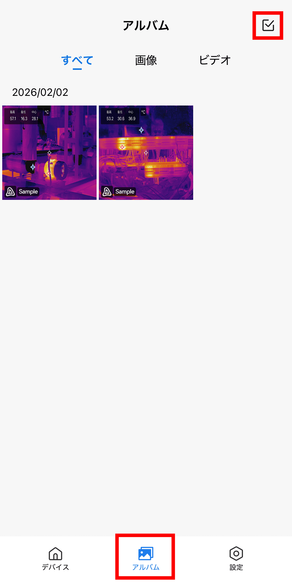 To access the album, you can also select the “Album” tab from the bottom of the HIKMICRO Viewer top screen. Tap the check mark in the top left.