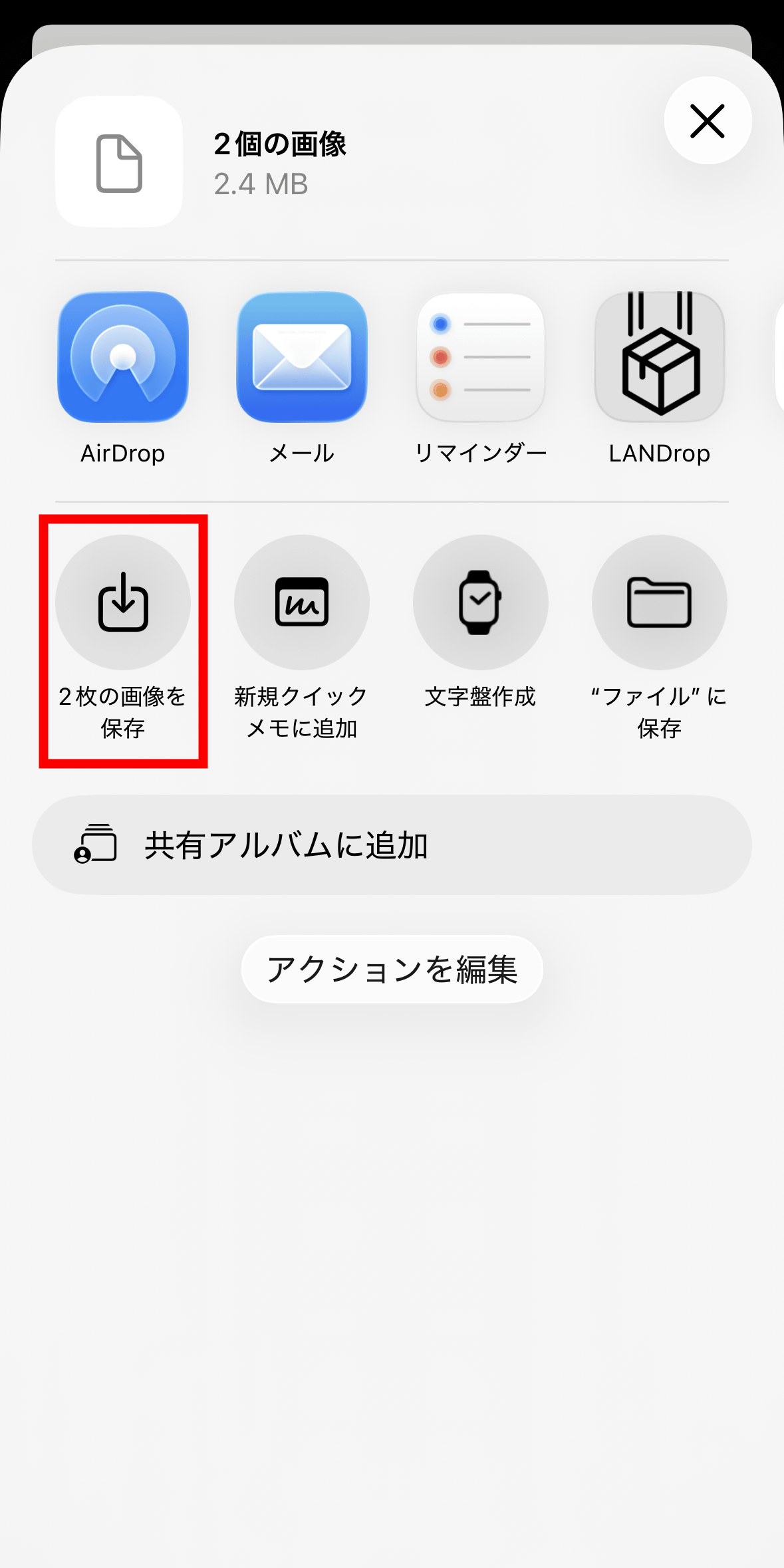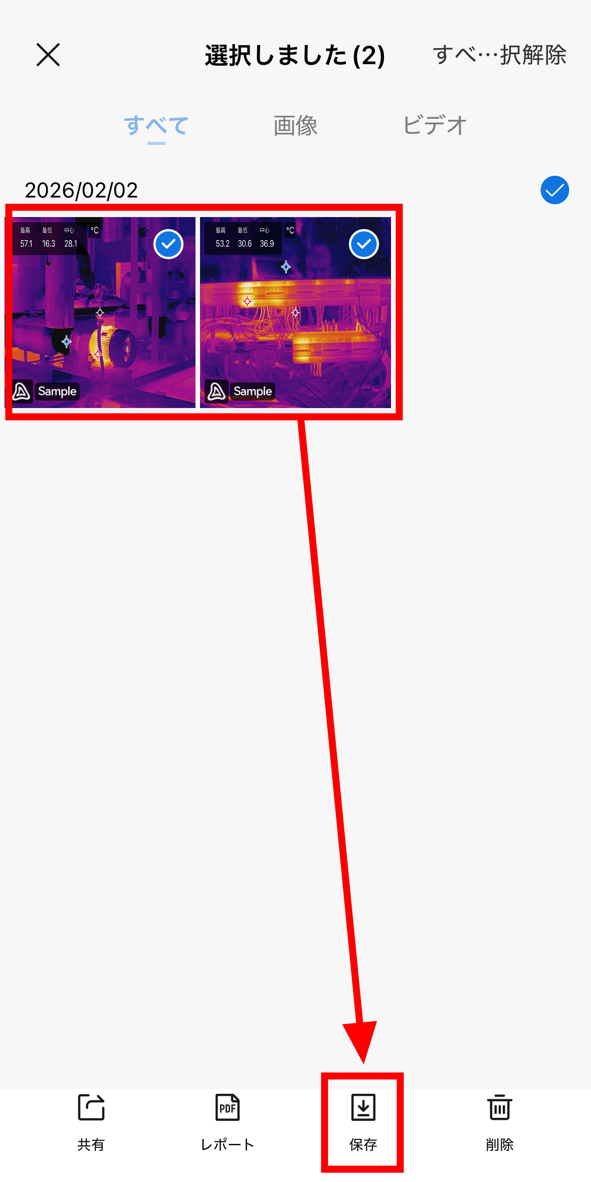 When you tap “Save 2 images”, the photos and videos you took will be copied to the photo library in “Photos”.