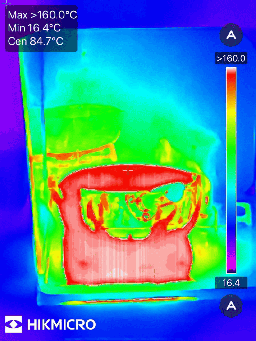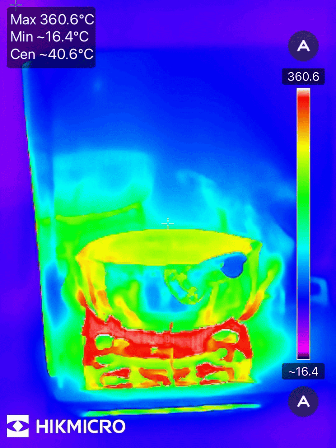 And this is what it looks like at temperature range level 2. Level 2 allows you to photograph higher temperatures, so you can see that the measurement results are particularly detailed around the fire.