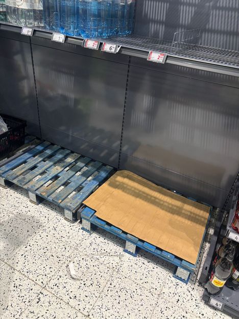 Myös Ideaparkin Prisman vesihylly oli tyhjä maanantai-iltana.