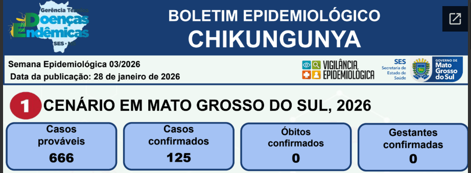 According to the SES (State Health Secretariat), as of 2026, 577 suspected dengue cases have already been registered in Mato Grosso do Sul, of which 23 have been confirmed.