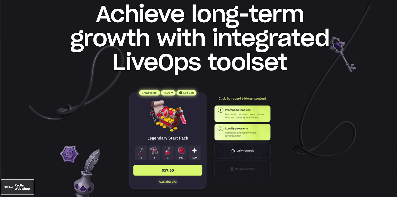 Transform your online store into a LTV powerhouse with Xsolla’s LiveOps tools. Run dynamic, segmented campaigns to increase repeat purchase rates by 80% and increase player retention by over 15% with in-game synced offers and loyalty shops.