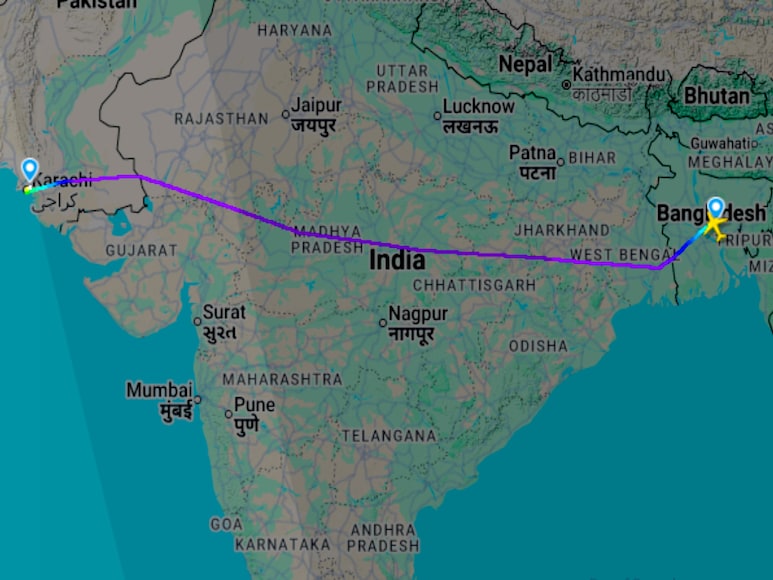 विमान ने ढाका से कराची तक इसी रास्ते का इस्तेमाल किया.